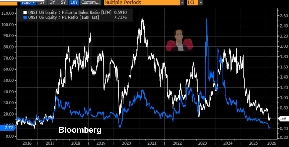 QNST: 10-Year Price-to-Sales and P/E Charts